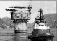 Above - a concrete offshore structure being towed into position in the North Sea.